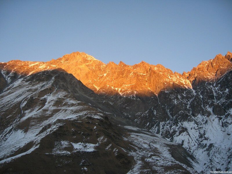 Подъем по леднику к перевалу Казбекский (4200 м), ночёвка в палатках у перевала.