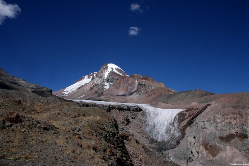 Гора Казбек (5033 м) входит в число самых доступных пятитысячников на Северном Кавказе. Она расположена на границе между Грузией и Россией. Для восхождения на вершину Казбека проложено два альпинистских маршрута: с севера, из России, через пик ОЖД (2Б альпинистская) и с юга, из Грузии, через Казбекское плато (2А альпинистская). Маршрут на Казбек со стороны Грузии более удобен для восхождения и привлекателен для альпинистов тем, что здесь не требуется регистрации и оформления пропусков в погранзону. По сравнению с рядом стоящим Эльбрусом восхождение на Казбек является более суровым и сложным - часть пути проходит по леднику, что требует наличия полного набора альпинистского снаряжения. Восхождение на Казбек с юга позволяет получить немало приятных и волнующих впечатлений, преодолеть трудности подъёма, а также узнать Грузию - радушную и красивую страну. Программа тура очень насыщена и кроме покорения вершины Казбека включает в себя посещение многочисленных архитектурных памятников. В Грузию можно попасть разными путями: самолётами в Тбилиси или Кутаиси (летают лоукостеры) или наземным транспортом через Россию. Гражданам России и Украины разрешён безвизовый въезд на территорию Грузии.