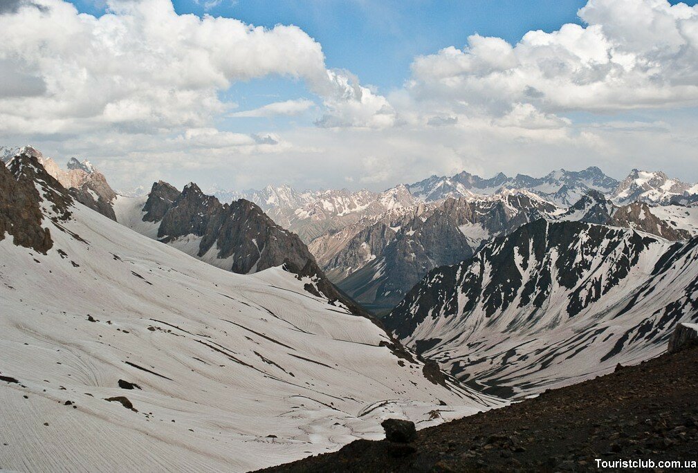 Перевал Чимтарга (4750 м) расположен между двумя гигантами – горами Чимтарга и Энергия. Через него проходят все маршруты, связывающие районы Мутные озёра и долина реки Правый Зиндон. Перевал несложный, но набор высоты от Мутных озер до седловины достигает 1200 м, поэтому вы разобьёте переход через этот перевал на два дня.