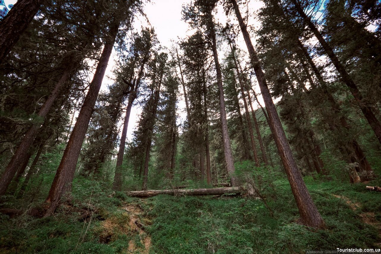 Переход к Аккемскому озеру (2100 м). Тропа идёт вдоль реки Аккем, поднимаясь вверх через кедровник. Отсюда открываются замечательные панорамы массива Белухи. Ночёвка в палатках на берегу озера.